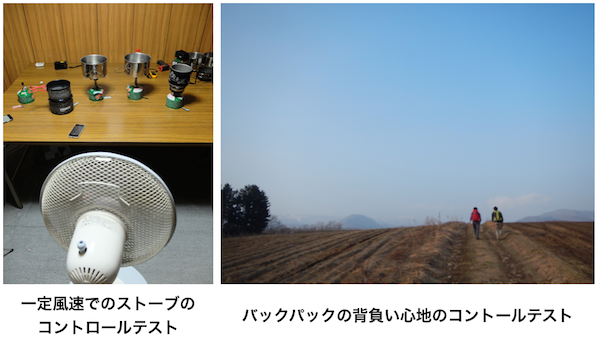例えば、ストーブはコントロールテストの比較的容易なギアで、以下のようなテストで評価を行います。